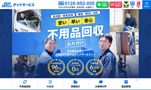 - 愛知県、三重県、岐阜県で高い実績を持つ不用品回収業者です。不用品回収のみならず、引越しサポート、ハウスクリーニング、ゴミ屋敷片付けまで対応可能となっています。年間10,000件の不用品回収実績が魅力です。さらにパソコンの回収は無料です。
