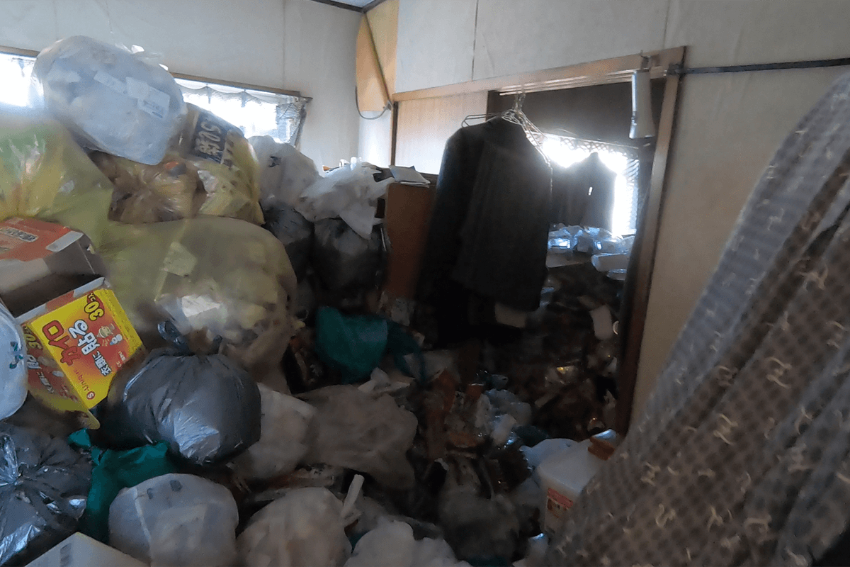 ゴミ屋敷の中には、室内に入ることすら困難なほどのゴミや不用品が積みあがった事例もあります。ここで紹介するのは60代の男性のお住まいです。