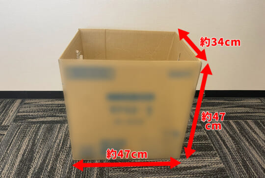 今回は幅約47cmx高さ約47cmx奥行約34cmのダンボールを使用しました。