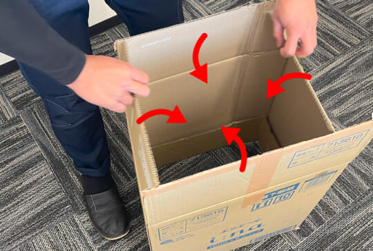 選んだダンボールの底面かフタ面どちらかを、全て内側に折り返します。