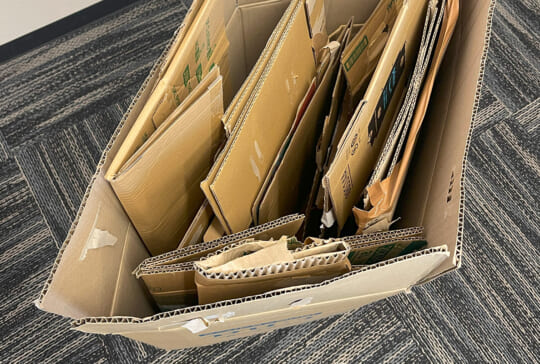 ダンボールをまとめて回収に出す際には、発泡スチロールやビニール等もできるだけ外します。