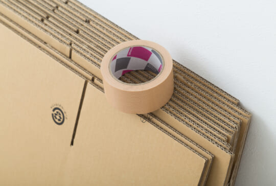 布製や紙製のガムテープを使ってダンボールを一周巻くことで、簡単にダンボールがまとめられます。