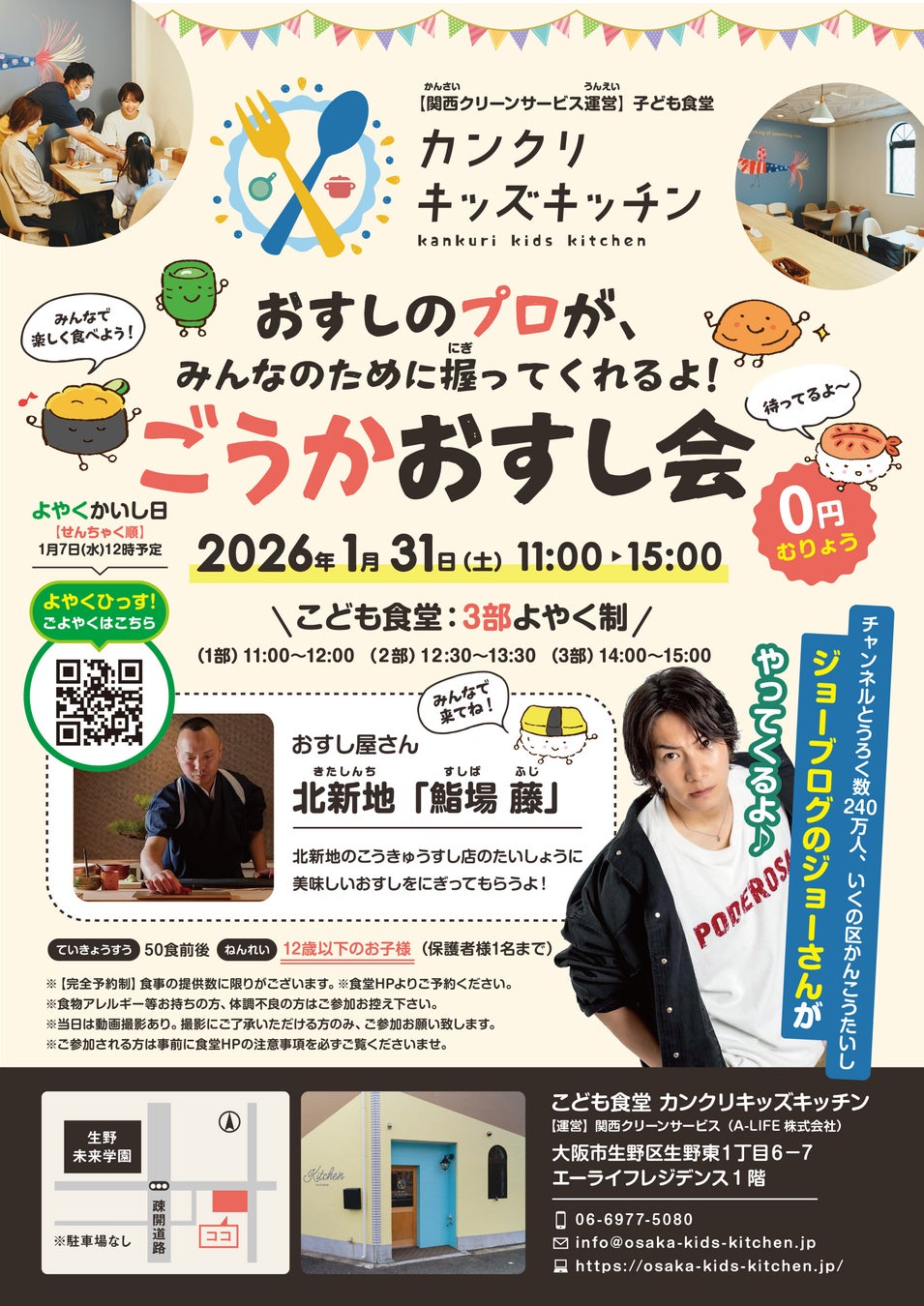 また当日は、生野区振興・親善・観光大使であり、YouTubeでも人気を集める「ジョーブログ」ジョー氏も来場。子どもたちとの交流や応援メッセージの発信を通じて、地域と子ども支援の輪を広げていきます。